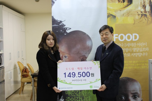 두드림 해밀에서 직업훈련을 마친 청소년이 수익금 일부를 기아대책본부에 기부하였습니다. 이 수익금은 해외빈곤아동 지원금으로 사용될 예정입니다.