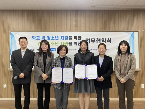 인천광역시학교밖청소년지원센터에서는 인천대학교 대학생활지원팀(사회봉사센터, 대학생활상담센터)과의 업무 협약식을 다음과 같이 진행하였습니다.