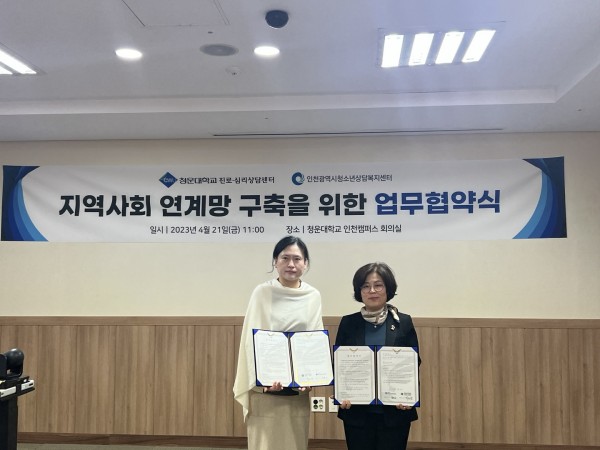 인천광역시청소년상담복지센터에서는 지역사회 연계망 구축을 위하여 청운대학교 진로심리상담센터와 협약을 체결하였습니다.
