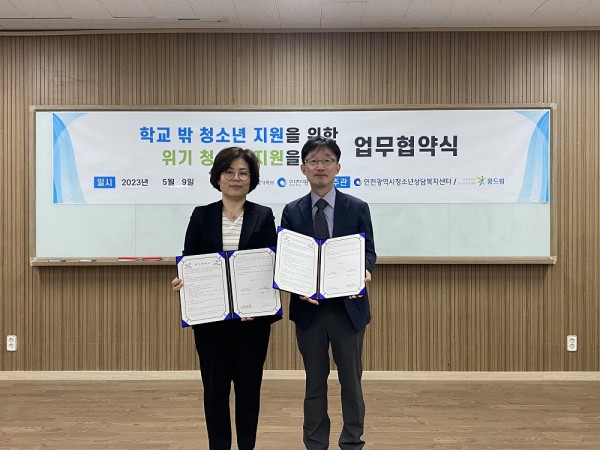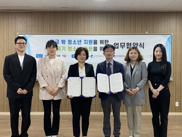 인천광역시학교밖청소년지원센터에서는 인하 위드아이 청소년 진로지원센터와의 업무 협약식을 다음과 같이 진행하였습니다.