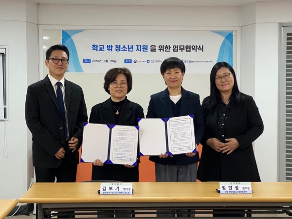 인천광역시학교밖청소년지원센터에서는 인천광역시청소년성문화센터와의 업무 협약식을 다음과 같이 진행하였습니다.