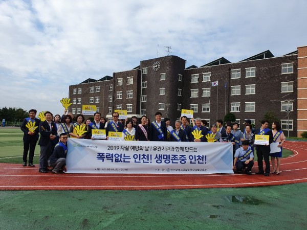 인천광역시교육청 주최로 2019년 자살예방의 날 학교폭력예방 및 생명존중캠페인을 실시하였습니다.