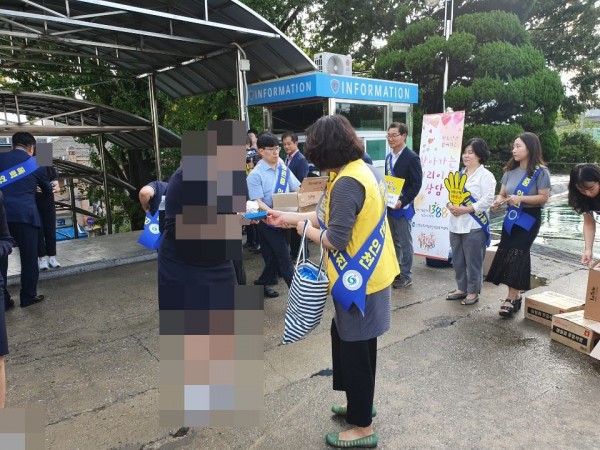 학생등교맞이에서 학생들을 격려하고 학교폭력예방 및 생명사랑 홍보물을 학생들에게 나누는 시간을 가졌습니다.