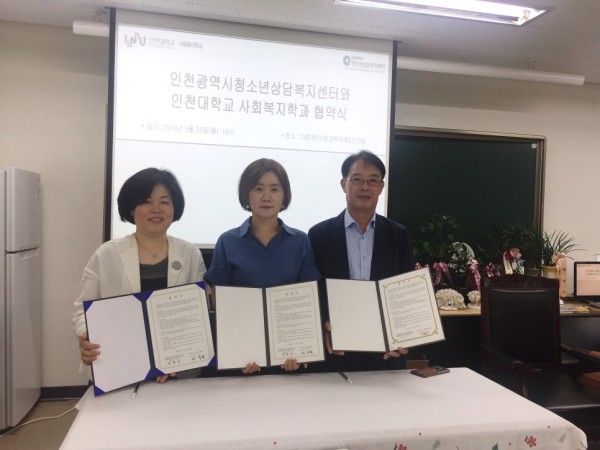 대학에 재학 중인 후기청소년에게 전문적인 상담서비스를 제공하고 상담복지 관련학과 전공생의 위기청소년에 대한 멘토활동을 위하여 인천광역시청소년상담복지센터/인천광역시학교밖청소년지원센터가 인천대학교 사회복지학과/인천대학교 정책대학원과 업무협약을 맺었습니다.