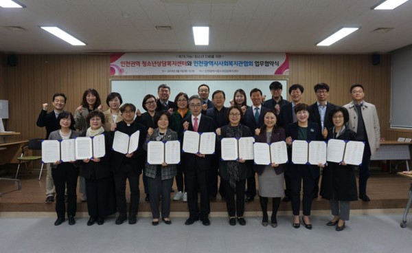 인천권역 청소년상담복지센터 9개 기관과 인천광역시사회복지관협회 19개 기관이 업무협약을 맺었습니다.