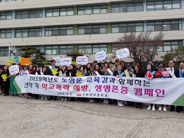 인천광역시교육청 주최로 2019년 유관기관과 함께하는 신학기 학교폭력예방, 생명존중캠페인을 실시하였습니다.