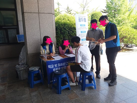 인천권역 꿈드림에서는 학교 밖 청소년 사례 발굴 체계를 구축하고, 청소년이 이용하기에 편리한 센터를 안내받을 수 있도록 해 꿈드림 이용률을 높이기 위하여 검정고시 접수를 위해 교육청에 방문한 학교 밖 청소년과 보호자를 대상으로 꿈드림 사업과 학교 밖 청소년 건강검진 사업을 홍보하였습니다.