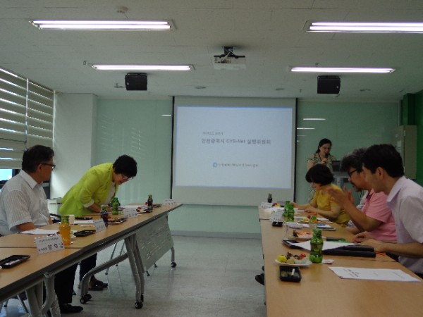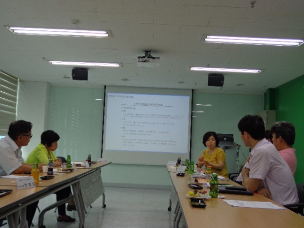 여섯 분의 실행위원을 모시고 2015년 상반기 사업의 경과보고와 2015년 주력 사업에 대해 의견을 듣는 시간을 가졌습니다.